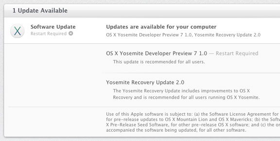 В тестировании OS X Yosemite Developer Preview 7 могут принять участие все пользователи, зарегистрированный в программе «OS X Beta Seed Program». Публичный релиз OS X Yosemite состоится осенью этого года. Операционная система будет распространяться только через онлайн-магазин Mac App Store.