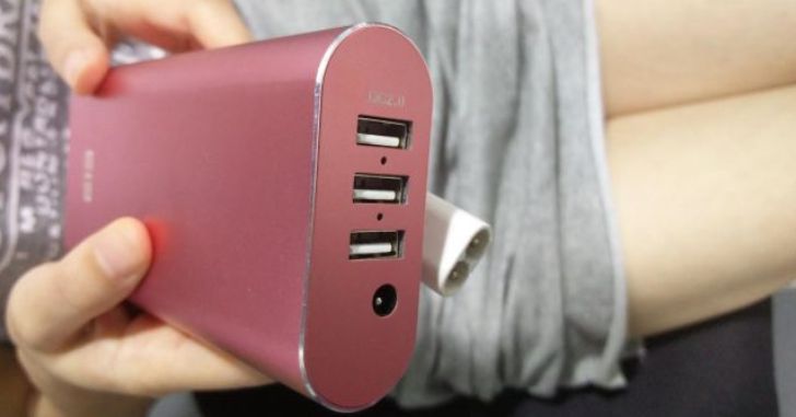 Выглядит он, как обычные павербанки, правда немного крупнее. В наличии три USB-порта (Qualcomm QC 2.0 5В / 9В / 12В / 2A, два порта USB 5В / 2А), а также порт для зарядки ноутбука 19.4 В / 4.74А.