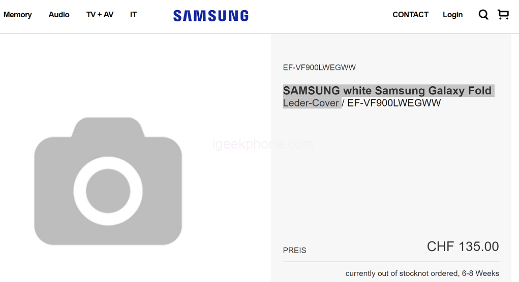 На швейцарском сайте южнокорейского производителя появилось упоминание о защитном чехле для Galaxy Fold. Фото не предложено, зато указан ценник в размере 135 швейцарских франков ($135). Вероятно, в Samsung решили, что такая стоимость устроит покупателей, которые выделят на покупку смартфона почти $2000.