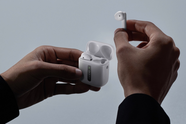 Дизайн и форм-фактор новых TWS наушников от Oppo аналогичен Apple AirPods. Они также поставляются с чехлом для зарядки, на котором размещена металлическая вставка с фирменным логотипом компании. На ней также находится светодиодный индикатор состояния зарядного устройства. Сам кейс заряжается с помощью зарядного кабеля USB Type-C.