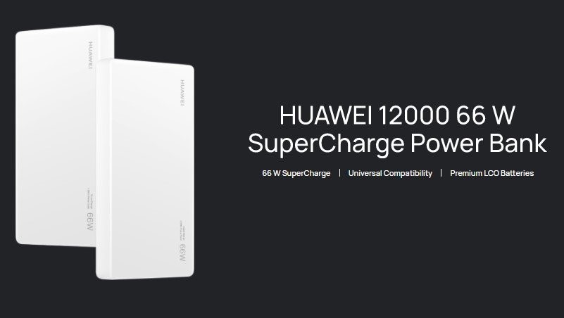 Внешний аккумулятор Huawei 12000 66W SuperCharge Power Bank имеет мощность 66 Вт (вход и выход), состоит из трех литиево-кобальто-оксидных аккумуляторов емкостью 4020 мАч каждый. В наличии выходные порты USB-A и USB-C. Последний играет также и роль входного разъема. Об уровне заряда оповещает четырехдиодная индикация. Зарядить павербанк можно всего за 1.8 часа. Заряжать им можно даже ноутбуки.