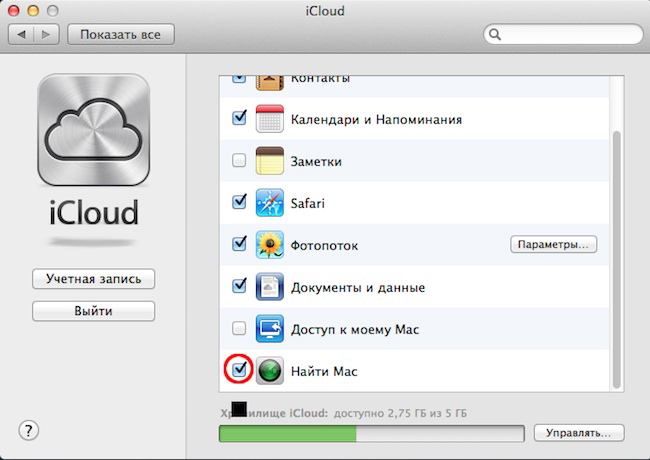 Далее возвращаемся в «Системные настройки» –> «iCloud» и ставим галочку напротив «Найти Mac». iCloud должен быть обязательно активирован на устройстве.