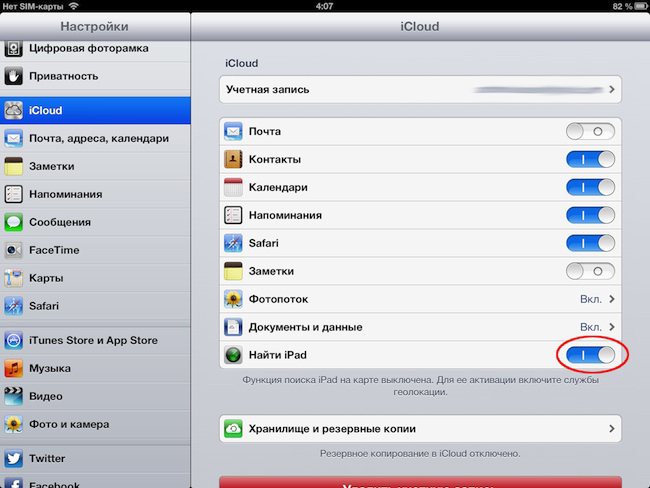 2) Включаем Find My iPhone на iOS-устройстве.