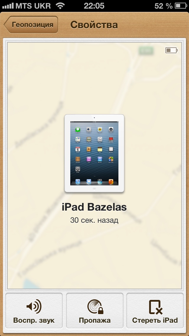 Видно, что мы можем воспроизвести звук, заблокировать iPad и стереть с него всю информацию. Для начала попробуем послать сигнал на iPad.