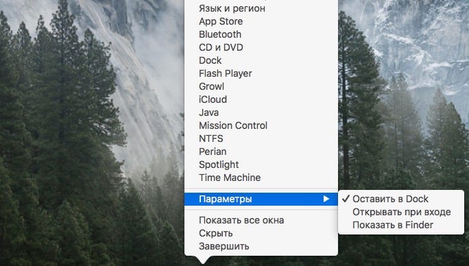 Поскольку вы получаете доступ ко многим из параметров через «System Preferences (Системные настройки)», быстрый запуск приложения ускорит процесс настройки настроек. Именно поэтому лучше его переместить его в Dock: откройте «Системные настройки», нажмите и удерживайте значок в Dock и выберите «Options (Параметры)», а затем «Keep in Dock (Оставить в Dock)». Теперь вы можете быстро запустить приложение, щелкнув значок, или, прежде чем даже открыть приложение, удерживая значок, чтобы отобразить список его различных настроек.