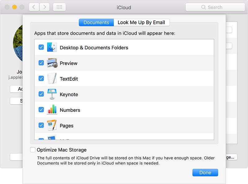 Компания Apple предоставила новые возможности — например, синхронизацию папок рабочего стола в облако (если у вас есть свободное место). Откройте «Системные настройки» и перейдите в «iCloud». В этом меню зайдите в «iCloud Drive», чтобы найти «Параметры», где вы можете выбрать, какие папки и приложения вы хотите синхронизировать автоматически с учетной записью облачного хранилища.