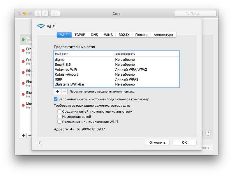 Когда вы подключаетесь к сети Wi-Fi, macOS запоминает ее, чтобы вы могли легко присоединиться к ней в будущем. Однако, когда вы полагаетесь на ноутбук, вы можете собрать длинный список сохраненных сетей, что затрудняет поиск того, что вам нужно. Вместо этого следует сделать настройки так, чтобы ваши любимые сети находились в самом вверху поиска, а которые вы больше никогда не будете посещать забыть. В разделе «System Preferences (Системные настройки)» выберите «Network (Сеть)», а затем «Advanced (Дополнительно)», чтобы изменить список сетей.