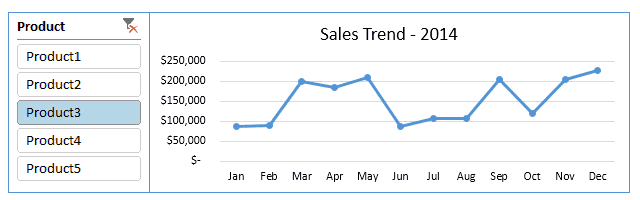 Со срезами можно, например, быстро создать интерактивную диаграмму по продажам какого-либо товара. Можно переключаться между наборами данных для различных продуктов, чтобы видеть изменения на одном графике.