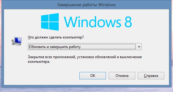 В Windows 8 самый (а если быть точнее, то наиболее очевидный) способ выключить компьютер — это открыть чудо-панель справа, нажать на значок «Выключение» и выбрать «Завершение работы». Эта панель открывается также кнопками Win + I.