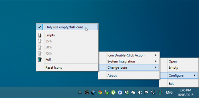 Утилита MiniBin позволяет также улучшить визуальную составляющую Корзины. Для этого в ней предусмотрена возможность использования альтернативных иконок, а в комплекте поставляется набор из 40 пиктограмм.