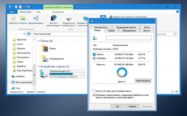 Если после установки обновления вы не заметили в течение нескольких дней в работе операционной системы никаких ошибок и сбоев, значит, всё прошло нормально и резервную копию можно удалить. Сделать это можно с помощью стандартной утилиты «Очистка диска». Для её запуска щёлкните правой кнопкой мыши по иконке системного диска в проводнике и выберите в меню пункт «Свойства». В появившемся окне нажмите на кнопку «Очистка диска».