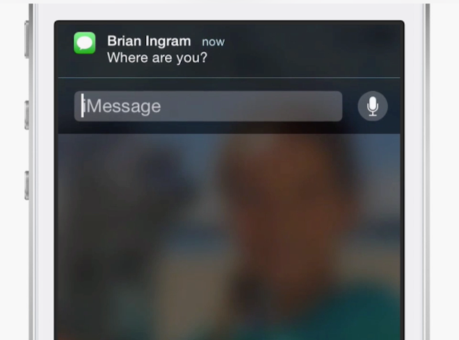Центр уведомлений в iOS 8 более продвинутый, нежели в iOS 7. Теперь вы можете отвечать на сообщения прямо из уведомлений. Например, свайп справа налево откроет расширенные опции уведомления.