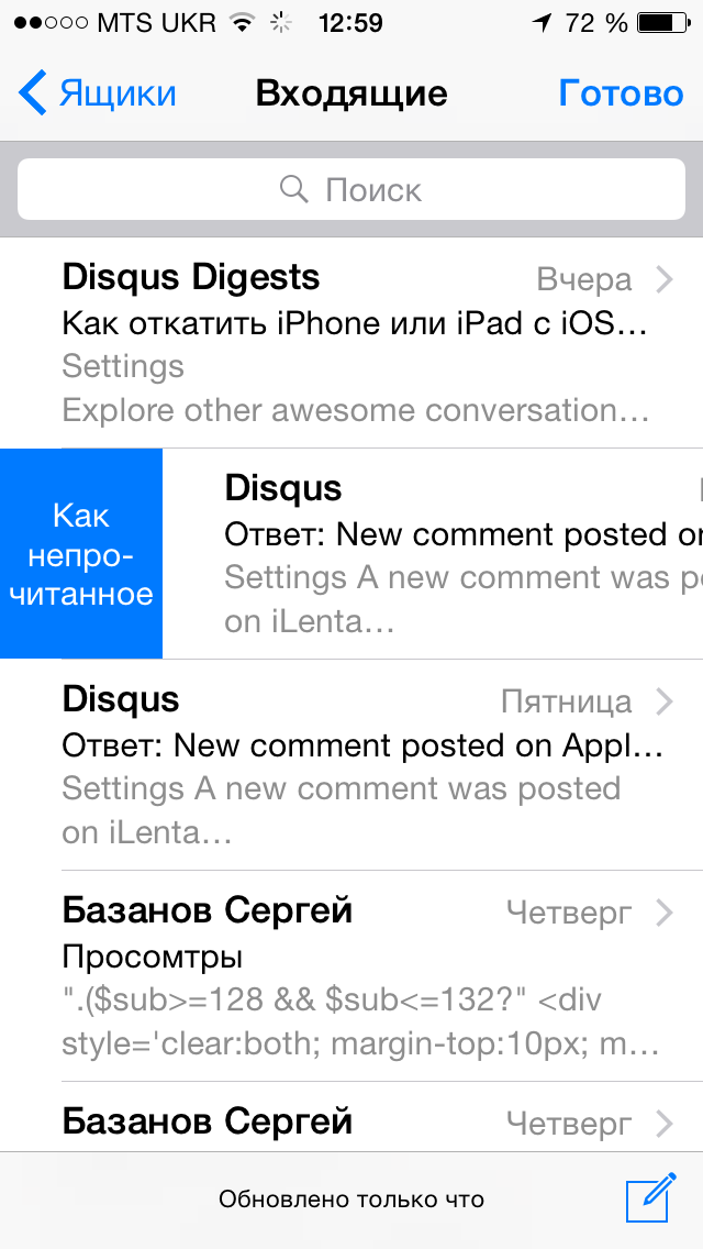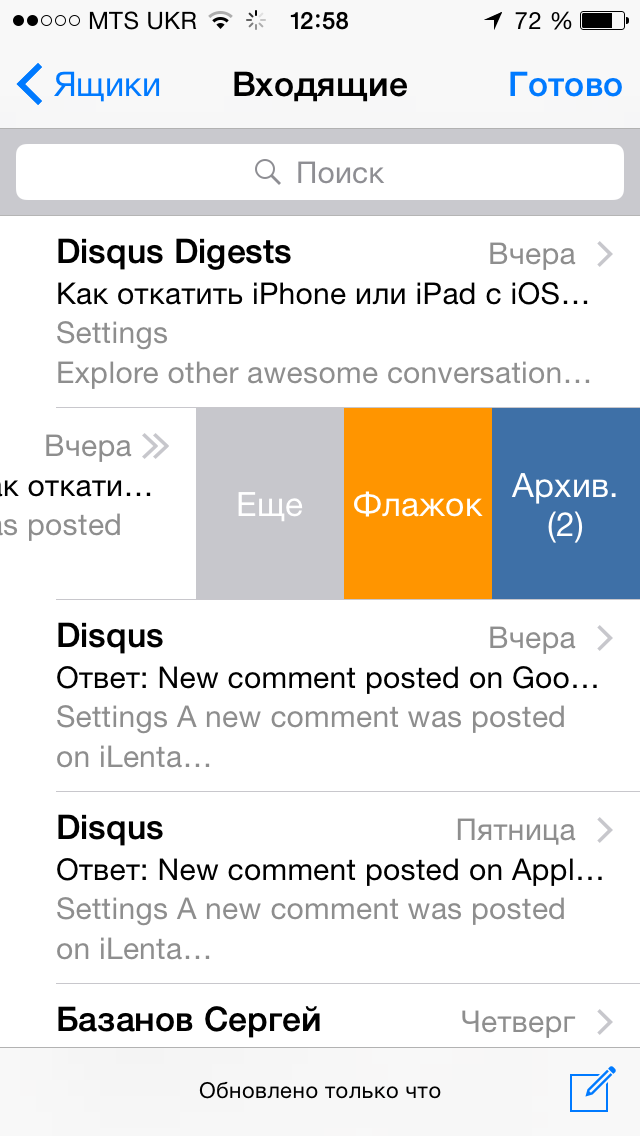 В iOS 8 появилось несколько улучшений в стандартном почтовом клиенте Mail. Свайпом влево (на заголовке) можно быстро отправить письмо в корзину и пометить его флажком. А свайпом вправо — отметить сообщение как непрочитанное.