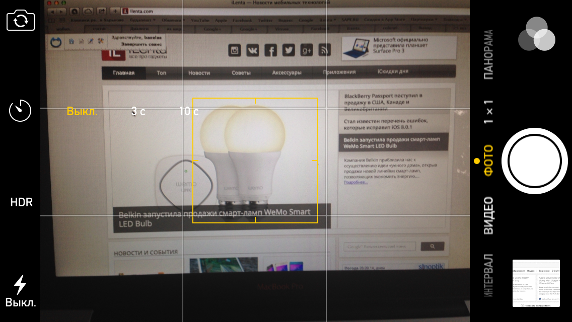 В большинстве сторонних приложений есть режим автоспуска, но если вы предпочитаете стандартную камеру, то у меня для вас хорошие новости — в iOS 8 автоспуск появился и в ней. Вы можете выставить таймер на три или десять секунд.