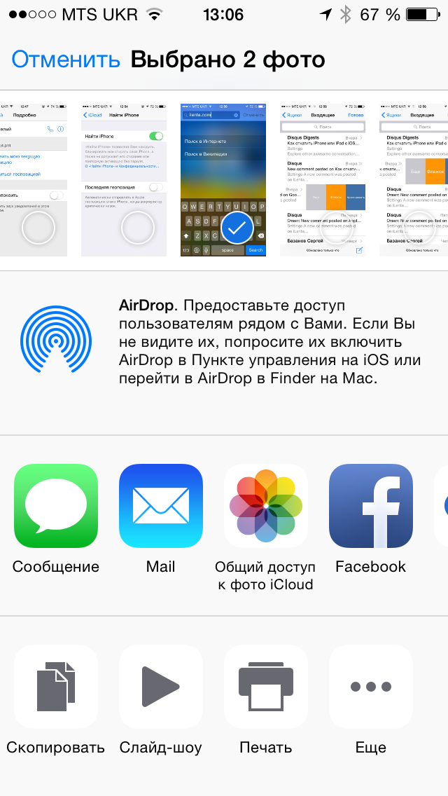 С iOS 8 пользователи iPhone и iPad получили более гибкие возможности шэринга, позволяющие отправлять контент через различные приложения и сервисы, так что теперь меню Поделиться содержит намного больше опций. Настроить их порядок, а также появление в этом меню вообще, можно коснувшись кнопки Еще в меню обмена.