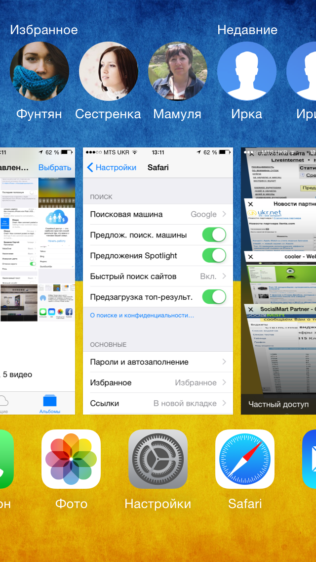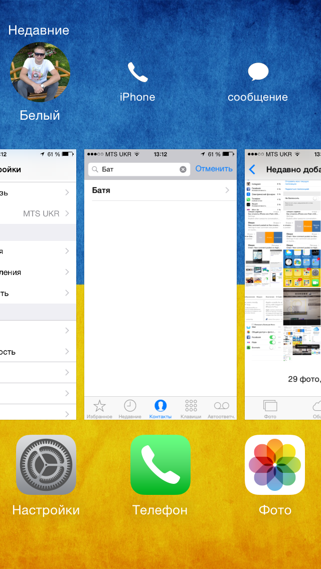 Экран многозадачности (двойное нажатие кнопки Home) теперь показывает не только последние приложения, но и контакты. Сверху над плитками приложений теперь располагаются иконки недавних контактов. Нажмите на иконку вашего друга, коллеги или просто случайного знакомого и вы сможете позвонить им, отправить сообщение или взаимодействовать с ними любым другим способом.