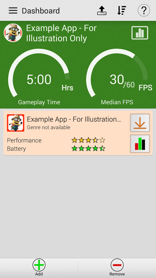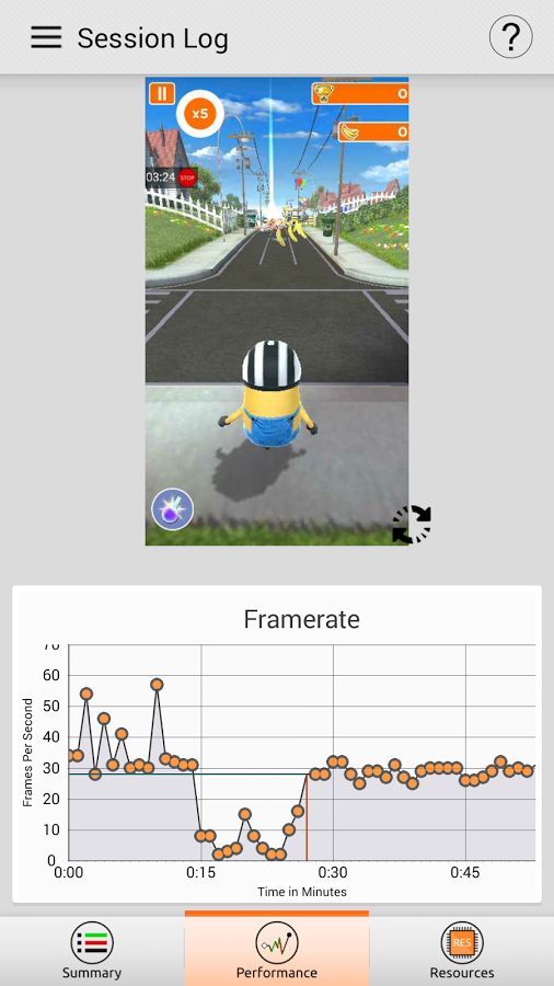 В мобильном клиенте GameBench выберите игры, которые надо отслеживать. Запустите какую-то игру, а когда завершите играть — появится лог-файл с информацией. Здесь можно посмотреть график изменения FPS со временем.