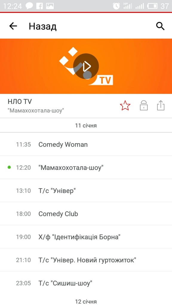 Чтобы посмотреть программу или фильм, нужно кликнуть на телеканал, который вас интересует, и вы попадете в список его передач. В верхней части нажимаете на иконку воспроизведения, и запускается проигрыватель.