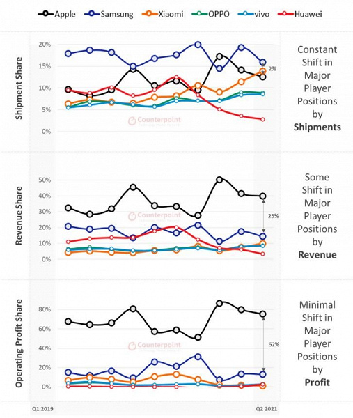 Компания Counterpoint Research подвела итоги второго квартала на мировом рынке смартфонов.