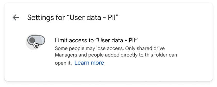 Google добавляет в Google Drive ограничение доступа к отдельным папкам