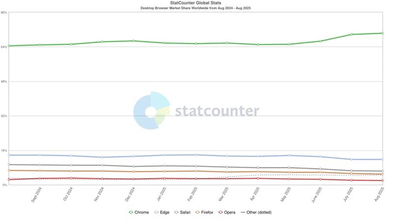 Согласно последнему отчету аналитиков Statcounter, браузер Google Chrome продолжает удерживать лидерство на мировом рынке и впервые достиг доли в 70.25%.