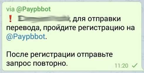 Вот как это работает. Набираете @paypbbot и вводите сумму. В первый раз программа попросит вас пройти регистрацию, указать номер телефона, последние цифры вашей карты и так далее.