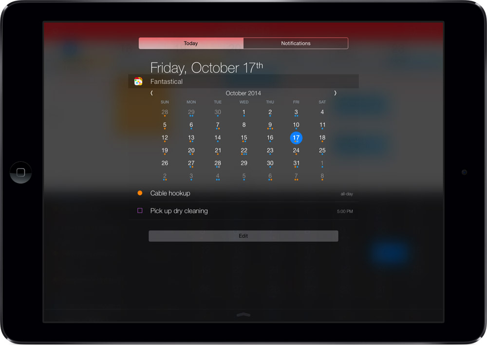 Дебютировавший в 2013 году новаторский календарь Fantastical 2 позволяет добавить в Центр уведомлений многофункциональный виджет. С его помощью можно просматривать список событий и легко управлять задачами при помощи интерактивных уведомлений.