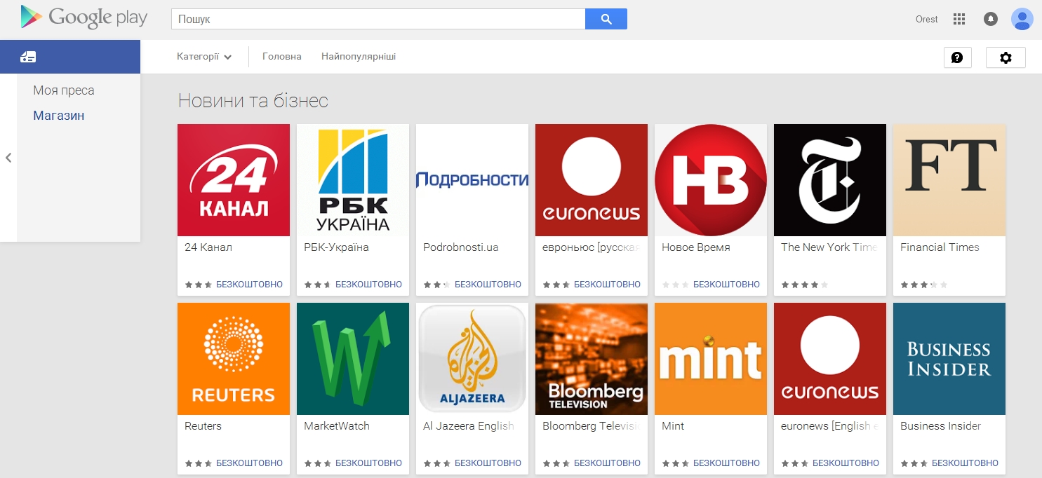 Пользователи украинского раздела магазина Google Play получили возможность пользоваться новым разделом, который посвящен прессе.