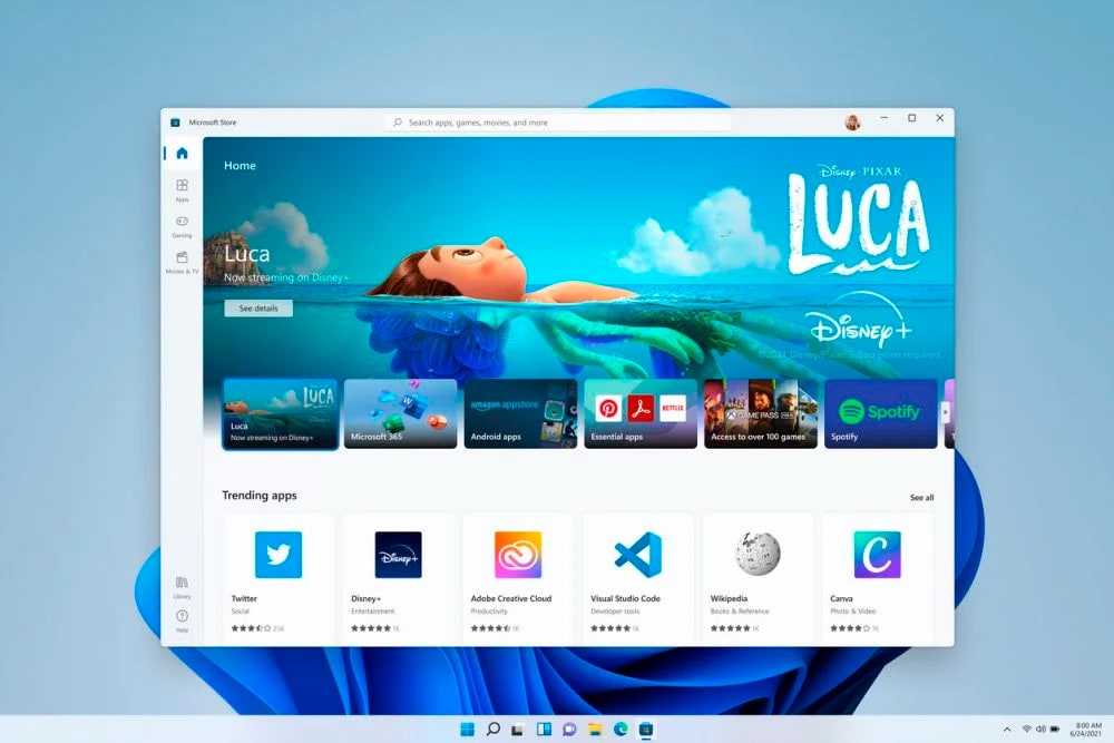 Windows 11 поставляется с новым магазином приложений Microsoft Store. Он создан с нуля и теперь поддерживает приложения, созданные на различных платформах, включая Win32, .NET, UWP, Xamarin, Electron, React Native, Java и Progressive Web Apps. Он также предлагает темы и расширения для браузера Microsoft Edge. Магазин Microsoft Store также имеет новый элегантный пользовательский интерфейс для удобной навигации.