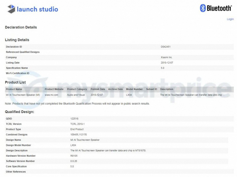 Будущая новинка появилась на сайте регулятора Bluetooth SIG. В базе данных сертификационного центра устройство значится под модельным номером LX04.