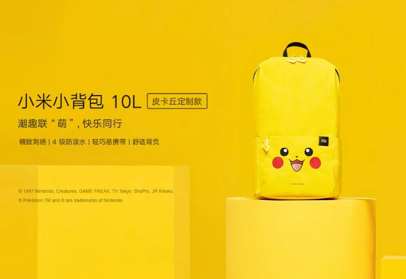 Рюкзак Xiaomi Mi Backpack 10L Pikachu Edition тоже получил желтый окрас, а его собачки на молниях выполнены в виде хвоста покемона. Водоотталкивающее покрытие соответствует оригинальной модели рюкзака. Цена составляет $9.