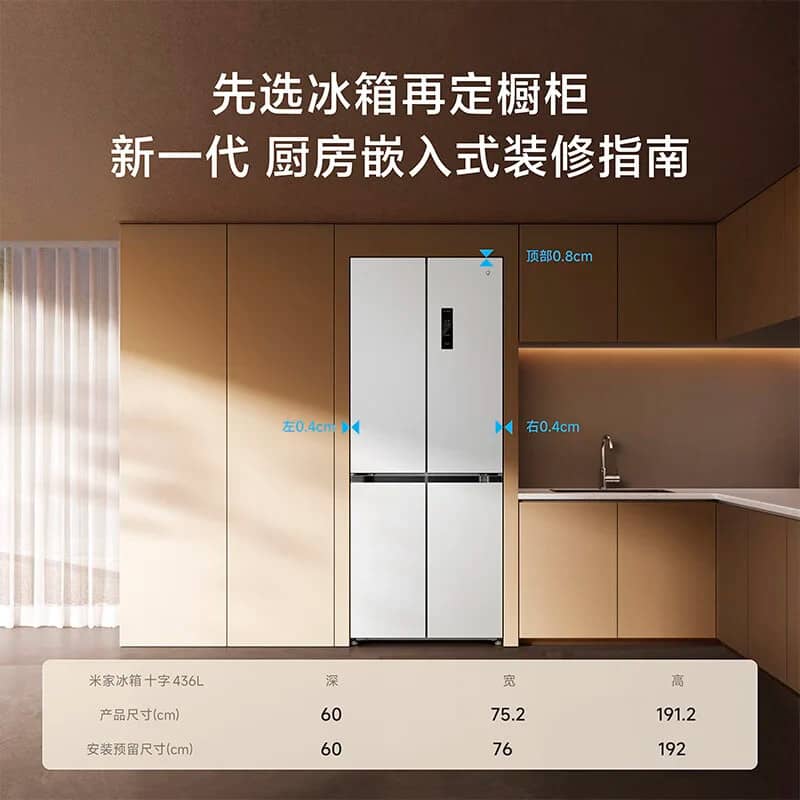 Mijia Refrigerator Fresh Storage Cross 436L достиг своей ультратонкой формы благодаря инновационным технологиям. Холодильник использует систему отвода тепла снизу, устраняя необходимость в вентиляционных отверстиях по бокам или сзади, позволяя холодильнику идеально вписываться в пространство кухни.