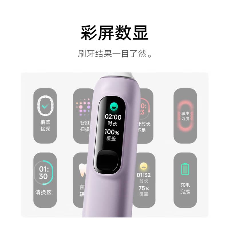 Это первая зубная щетка Mijia с цветным дисплеем, который предоставляет обратную связь в реальном времени. Устройство оснащено 6-осевым датчиком движения, который отслеживает углы наклона и позиции щетки, создавая визуальную «карту зубов» для выявления пропущенных зон и их обработки.