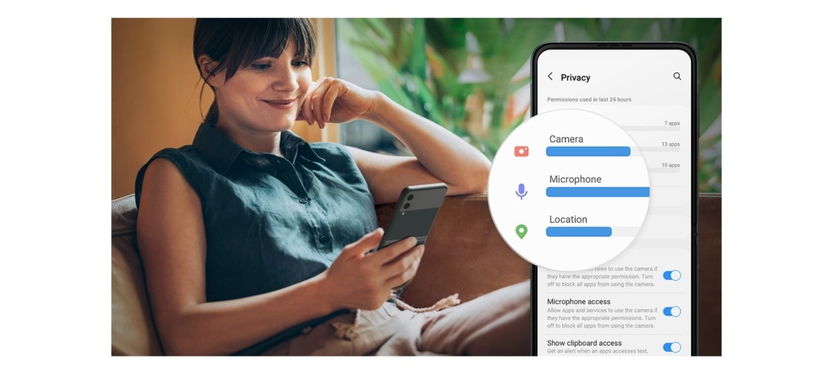 One UI 4 поставляется с переосмысленными виджетами, множеством новых цветовых палитр, более широким набором функций эмодзи, а также большим количеством GIF-файлов и стикеров, доступных с клавиатуры. Новая версия программного обеспечения будет предупреждать вас, когда приложение пытается использовать вашу камеру или микрофон, и включает новую панель управления конфиденциальностью, которая помещает все эти настройки в удобное место.
