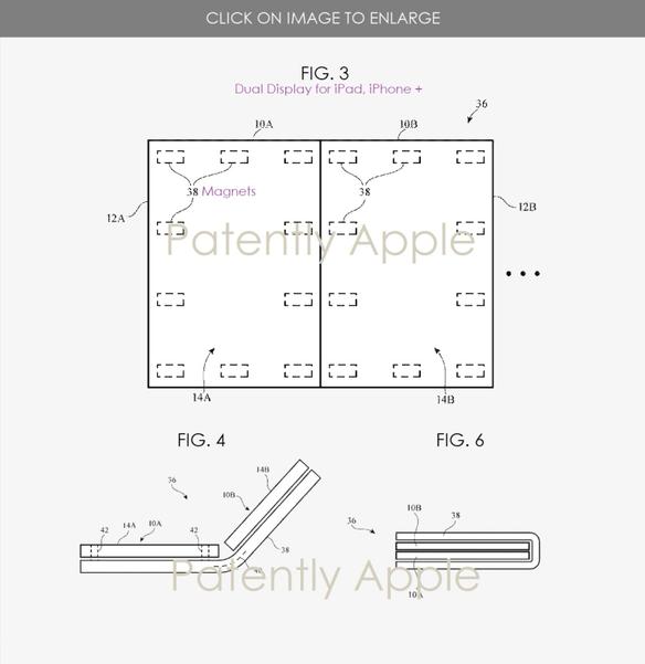 Документация допускает, что дисплеи складного аппарата будут съемными. И если речь идет о более крупной версии устройства, то в качестве экрана смогут выступать iPhone. Для этого даже предусмотрена специальная система магнитов.