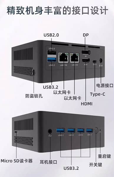 Устройство оснащается 4-ядерным 4-поточным процессором Intel N100 (12 поколение) с тактовой частотой 3.4 ГГц, накопителем SSD M.2 2280 или форм-фактора 2.5 дюйма.