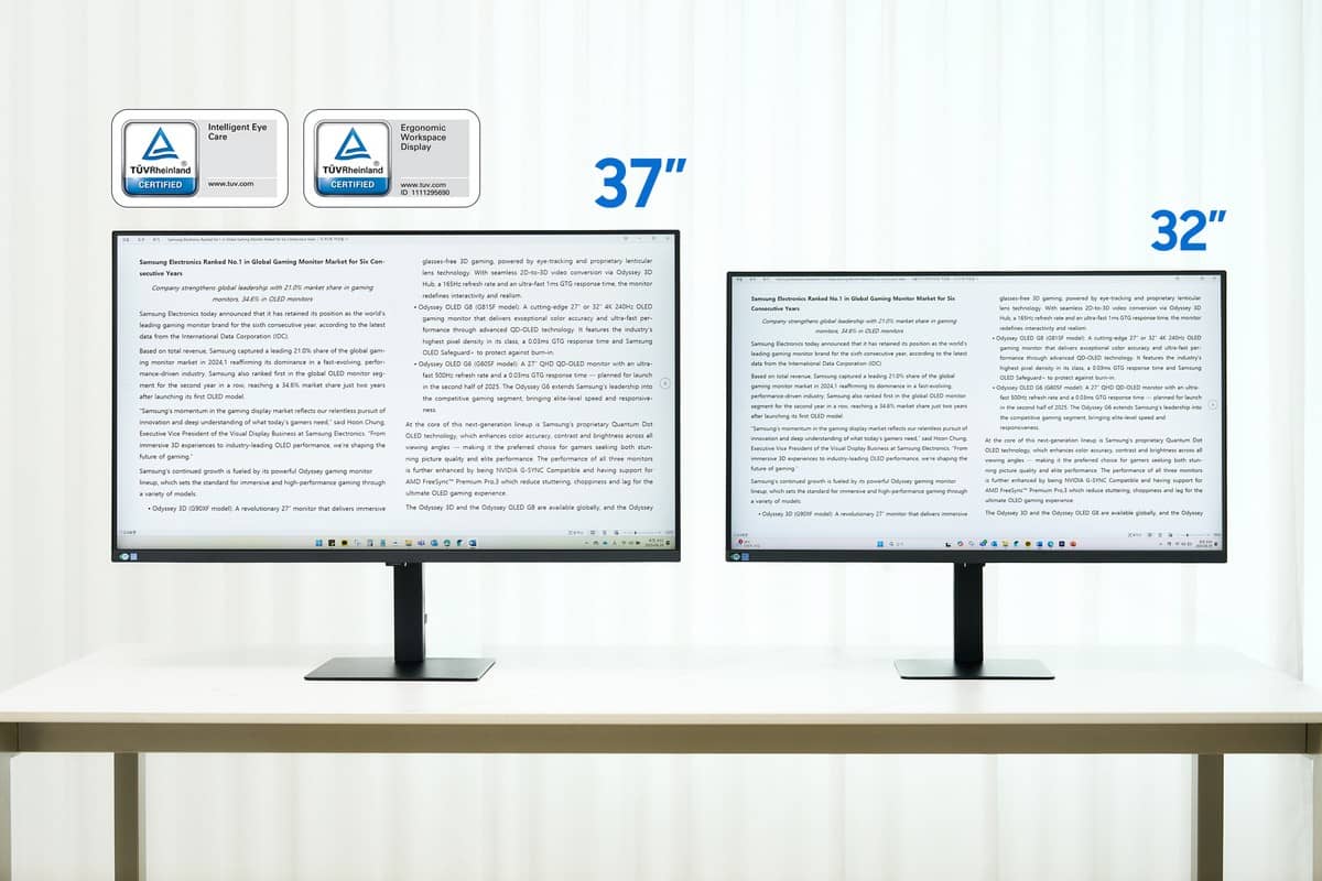 Монитор сертифицирован TÜV Rheinland как «эргономичное рабочее пространство» — статус, подтверждающий, что его конструкция снижает нагрузку на глаза при работе с текстами и документацией, а также способствует более глубокому погружению в задачи. Кроме того, устройство оснащено интеллектуальной системой защиты зрения: оно уменьшает воздействие синего света и устраняет мерцание, снижая усталость глаз. Этот функционал также получил сертификацию TÜV.