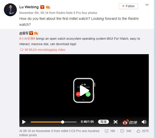 Топ-менеджер поинтересовался у пользователей, хотели бы они увидеть Redmi Watch? Естественно, это намек на предстоящее устройство, но никаких других подробностей о нем не предоставляется.