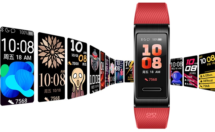 В плане дизайна Huawei Band 4 Pro похож на Band 3 Pro. Он оснащается 0.95-дюймовым цветным сенсорным AMOLED-экраном с разрешением 240 х 120 пикселей. На нем помещается 40 китайских иероглифов. Кроме того, пользователям доступно 100 красочных циферблатов.