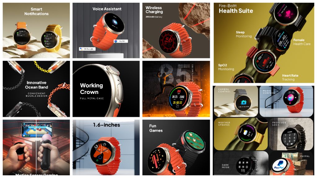 Fire-Boltt Cyclone оснащены 1.6-дюймовым LCD TFT-дисплеем с разрешением 400 х 400 пикселей, массой циферблатов, микрофоном, динамиком, поддержкой голосового помощника.