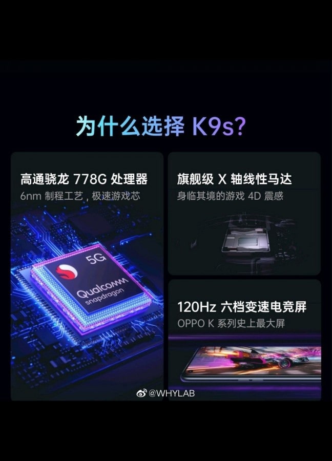 Компания Oppo в ближайшее время планирует пополнить свой ассортимент новым смартфоном Oppo K9s, который присоединиться к уже представленным моделям K9 и K9 Pro.