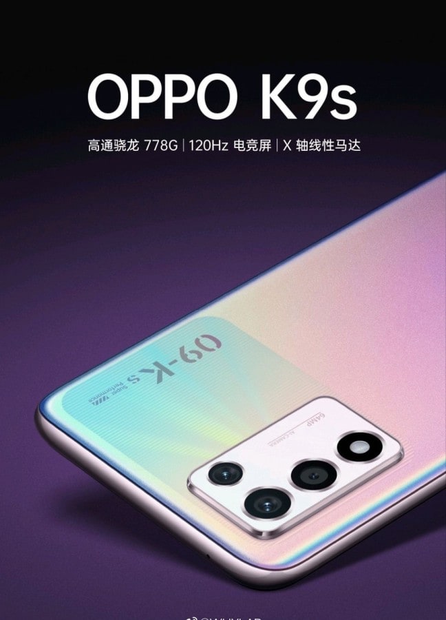 Кроме того, Oppo K9s будет оснащен чипсетом Snapdragon 778G, и, по слухам, иметь 6 ГБ или 8 ГБ оперативной памяти. За его питание будет отвечать аккумулятор емкостью 5000 мАч с поддержкой быстрой зарядки VOOC 4.0 мощностью 30 Вт.