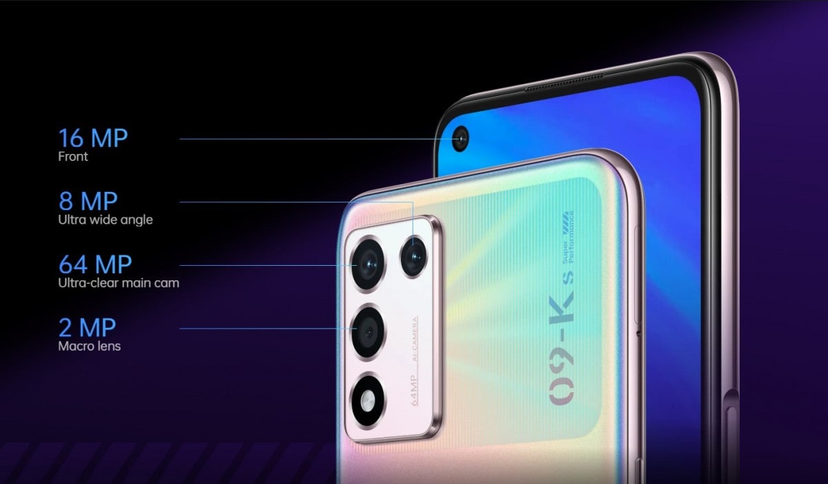 Задняя камера Oppo K9s, по сути, такая же как в модели Oppo K9 Pro. Это прямоугольный модуль, включающий светодиодную вспышку и три камеры — 64-Мп основную с диафрагмой f/1.7, 8-Мп сверхширокоугольную с углом обзора 119° и диафрагмой f/2.2, а также 2-Мп макрообъектив с диафрагмой f/2.4. Основная камера может записывать 4K видео со скоростью 30 кадров в секунду (с электронной стабилизацией).