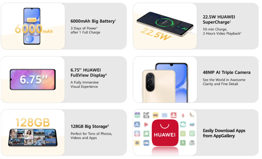 Также смартфон оснащен батареей емкостью 6000 мАч с поддержкой быстрой зарядки на 22.5 Вт. Новинка поставляется с операционной системой Android и оболочкой EMUI 12 без сервисов Google.