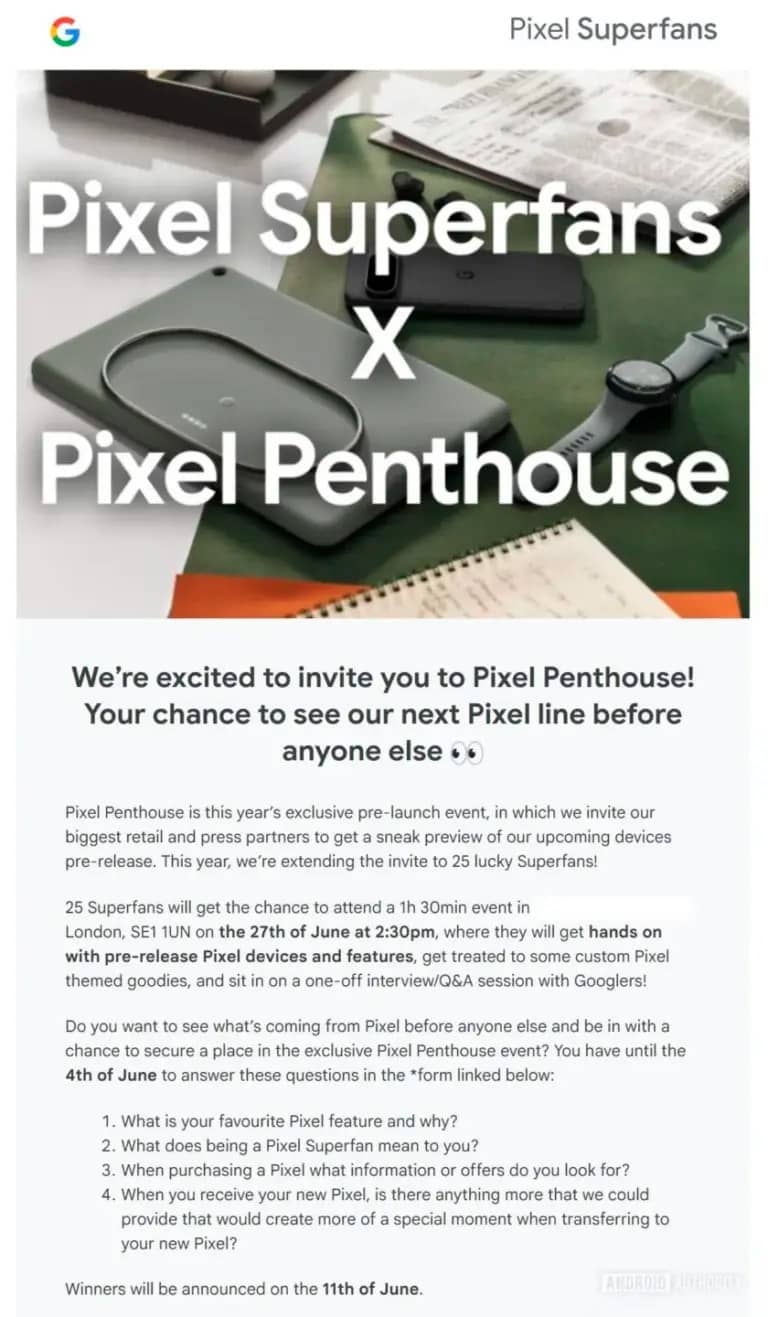 По данным Android Authority, мероприятие под названием «Pixel Penthouse» пройдет 27 июня 2025 года. Всего 25 поклонников бренда получат доступ к 90-минутной закрытой демонстрации, где смогут первыми протестировать новые устройства Pixel. Хотя в приглашении прямо не упоминается серия Pixel 10, в отсутствие других ожидаемых новинок Google почти наверняка речь идет именно о ней.