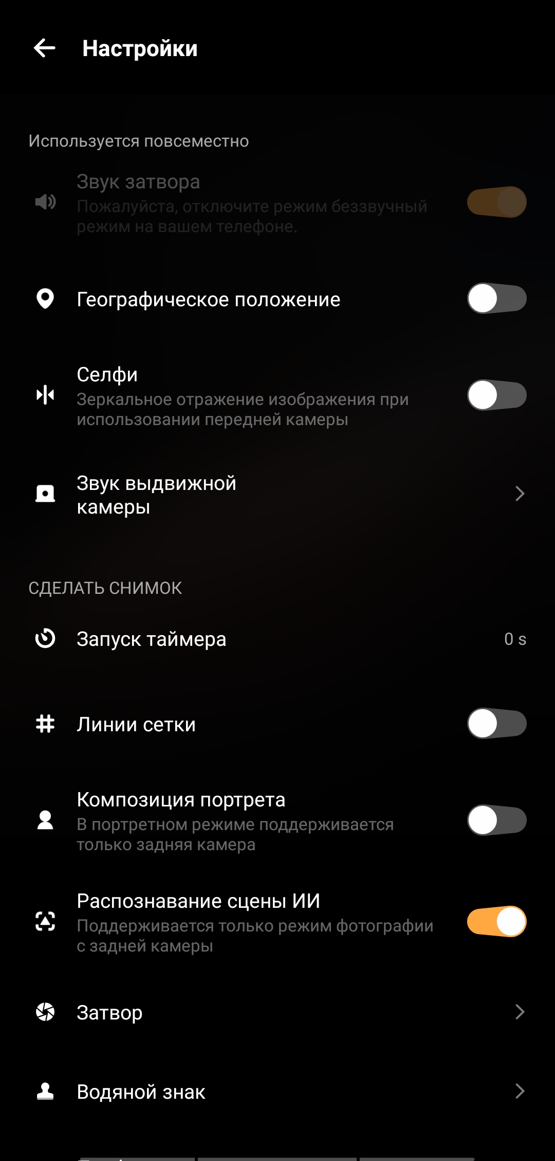 С интерфейсом приложения камеры разобраться будет легко. Здесь все просто и интуитивно. Есть переключатель, при помощи которого можно быстро переходить в режим съемки с 2-кратным оптическим зумом или с широким углом. Также есть портретный режим с размытием фона, режим супер-макро, панорамная съемка, ночная съемка, съемка фото с разрешением 64-Мп и профессиональный режим, в котором можно делать всевозможные настройки ISO, выдержки и т.д.