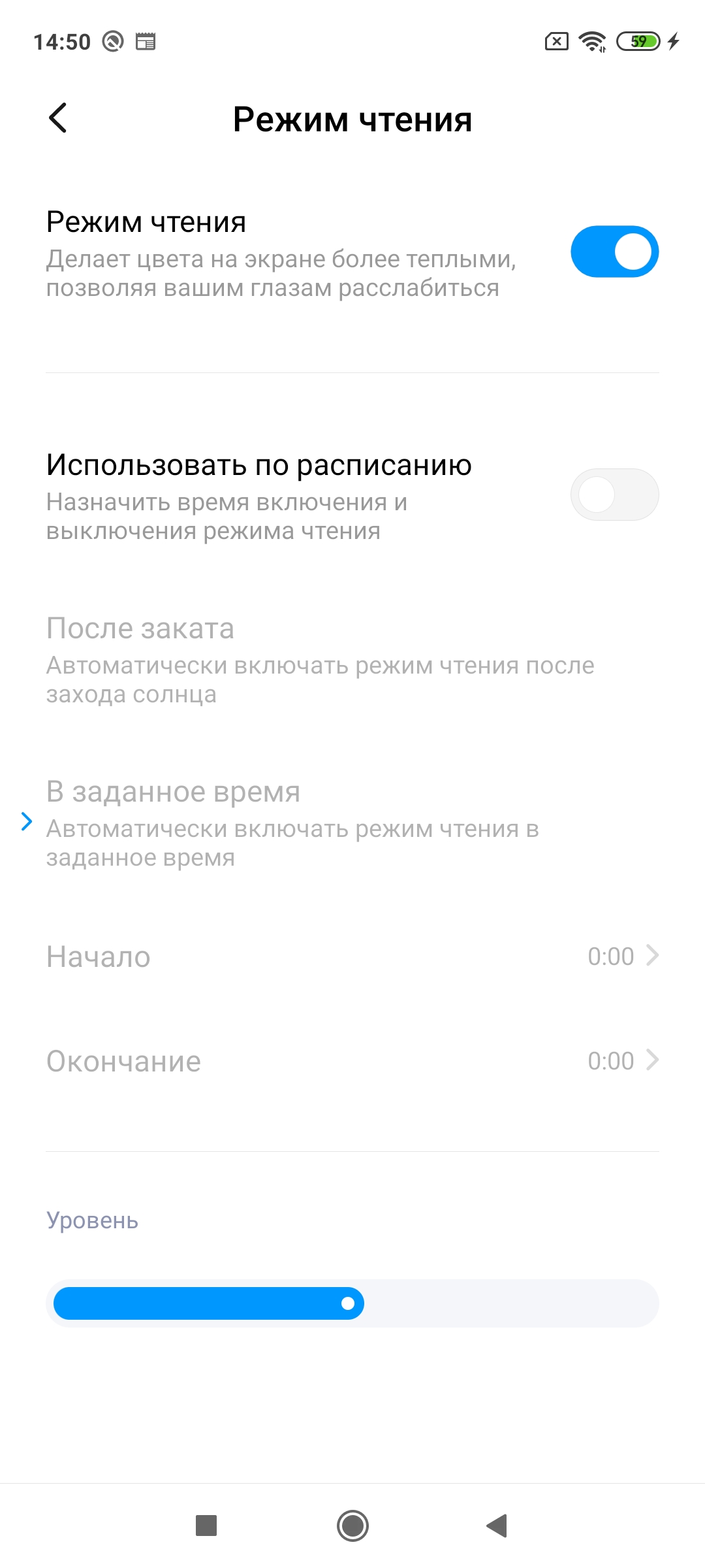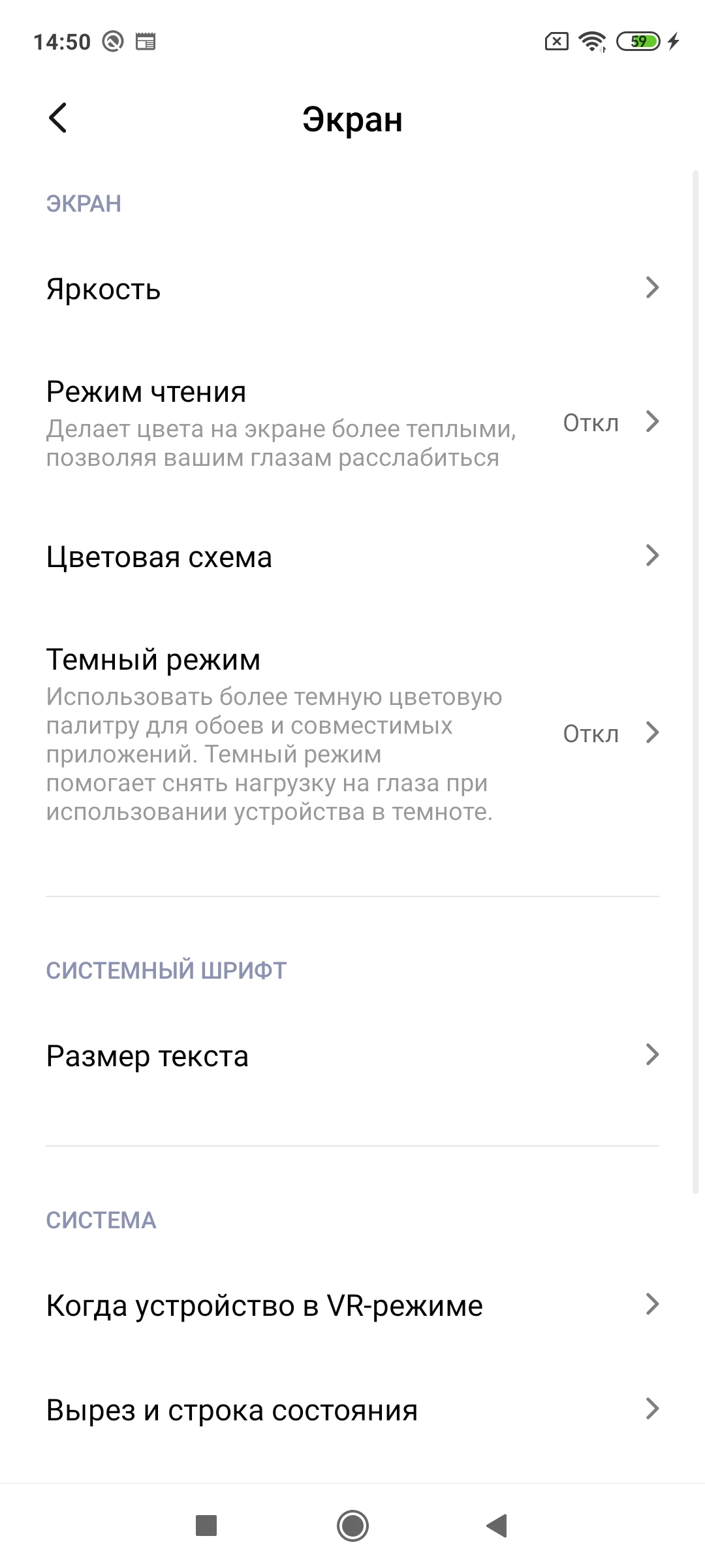 По настройкам все довольно привычно. Можно вручную менять цветопередачу от холодной к более теплой, включить темный режим или режим чтения, настроить яркость, а также размер текста.