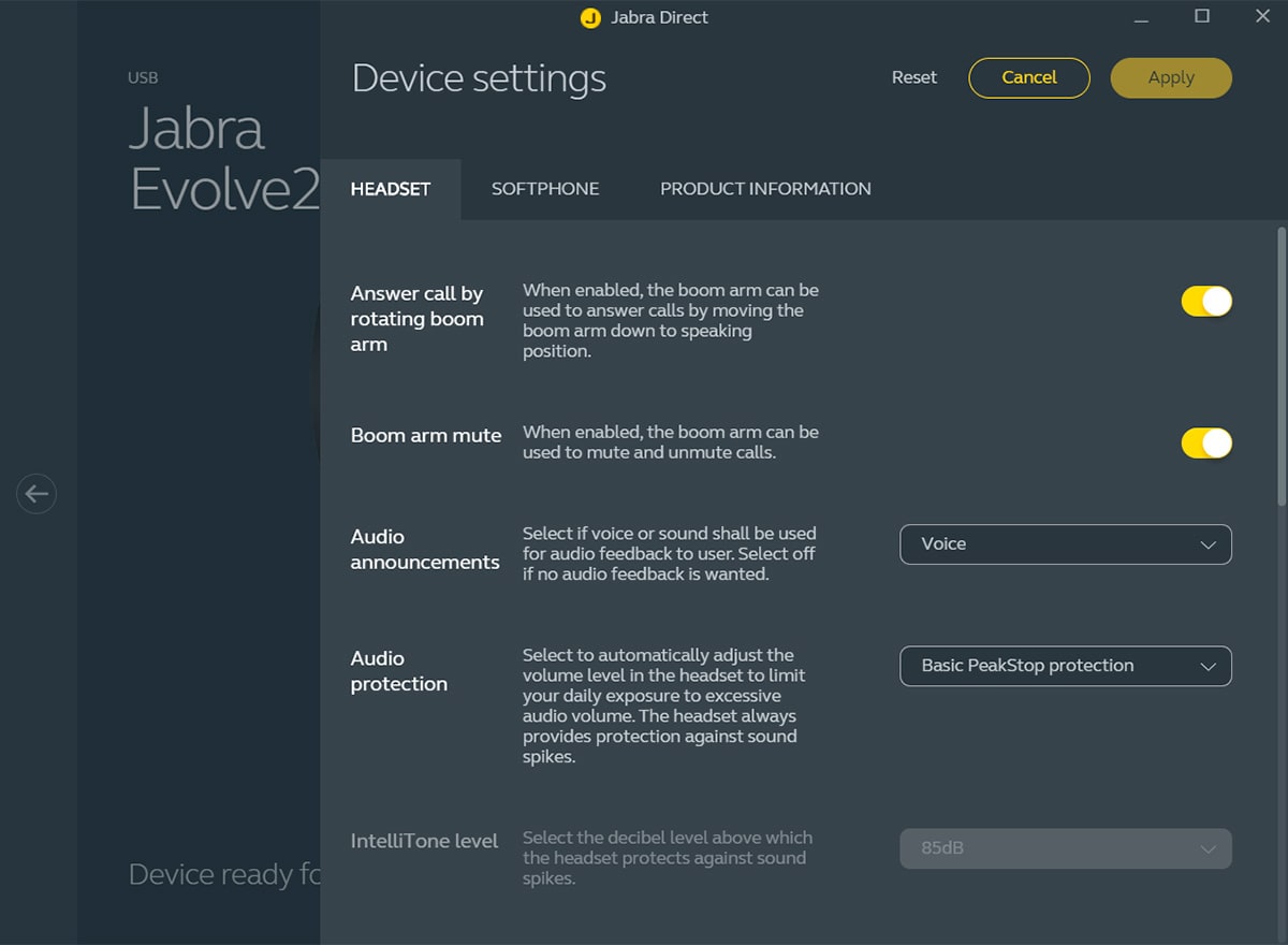 Программа Jabra Direct также содержит массу настроек. Например, в ней можно изменить эквалайзер или настроить уровень звука. Пункты меню здесь интуитивно понятные, поэтому проблем возникнуть не должно.