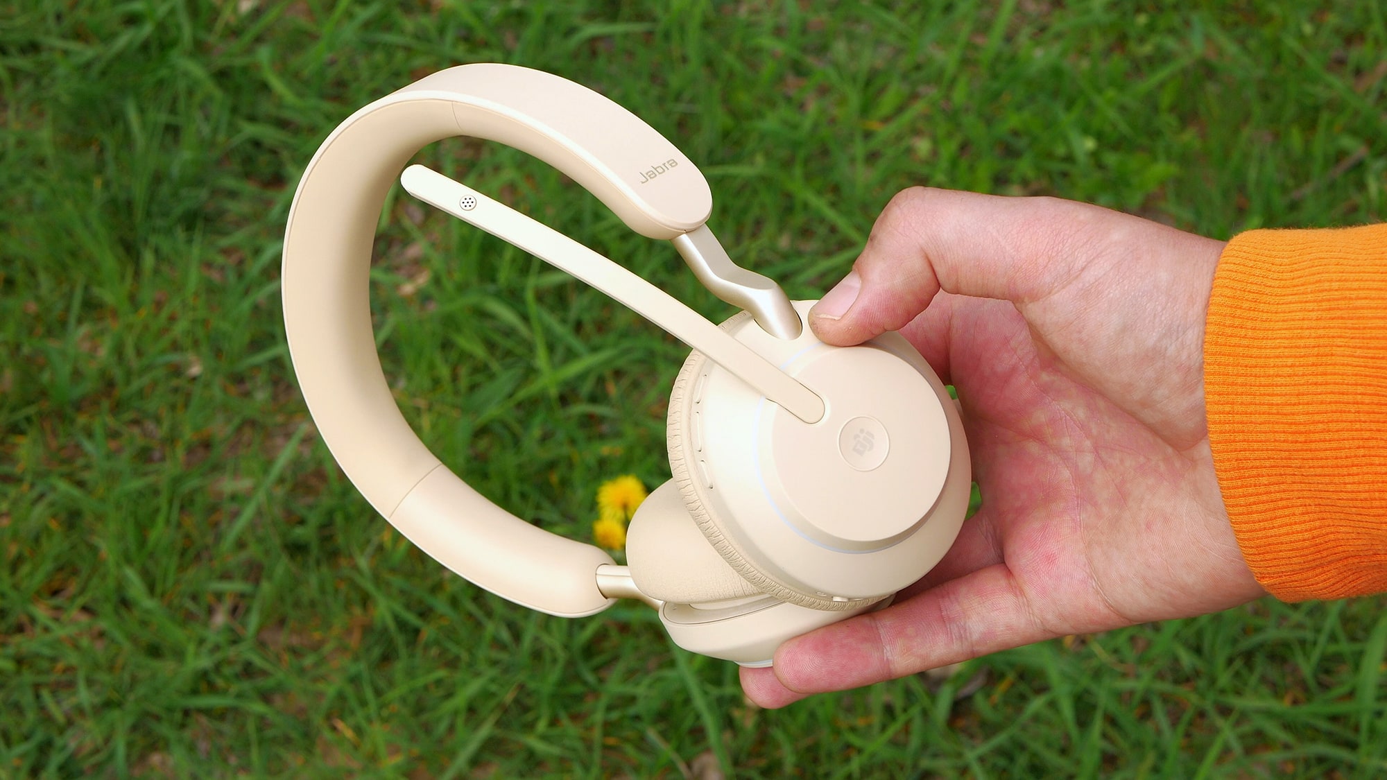 Чашки к оголовью крепятся с помощью алюминиевых элементов, поэтому о прочности данного крепления можно не волноваться. Металлические стержни выдвигаются из оголовья на 3 см, а чашки могут вращаться вокруг них на 135 градусов. Оголовье оснащено комфортным пеноматериалом. Благодаря такой конструкции, Jabra Evolve2 65 подойдет под разные размеры голов и будет удобной для любого пользователя.