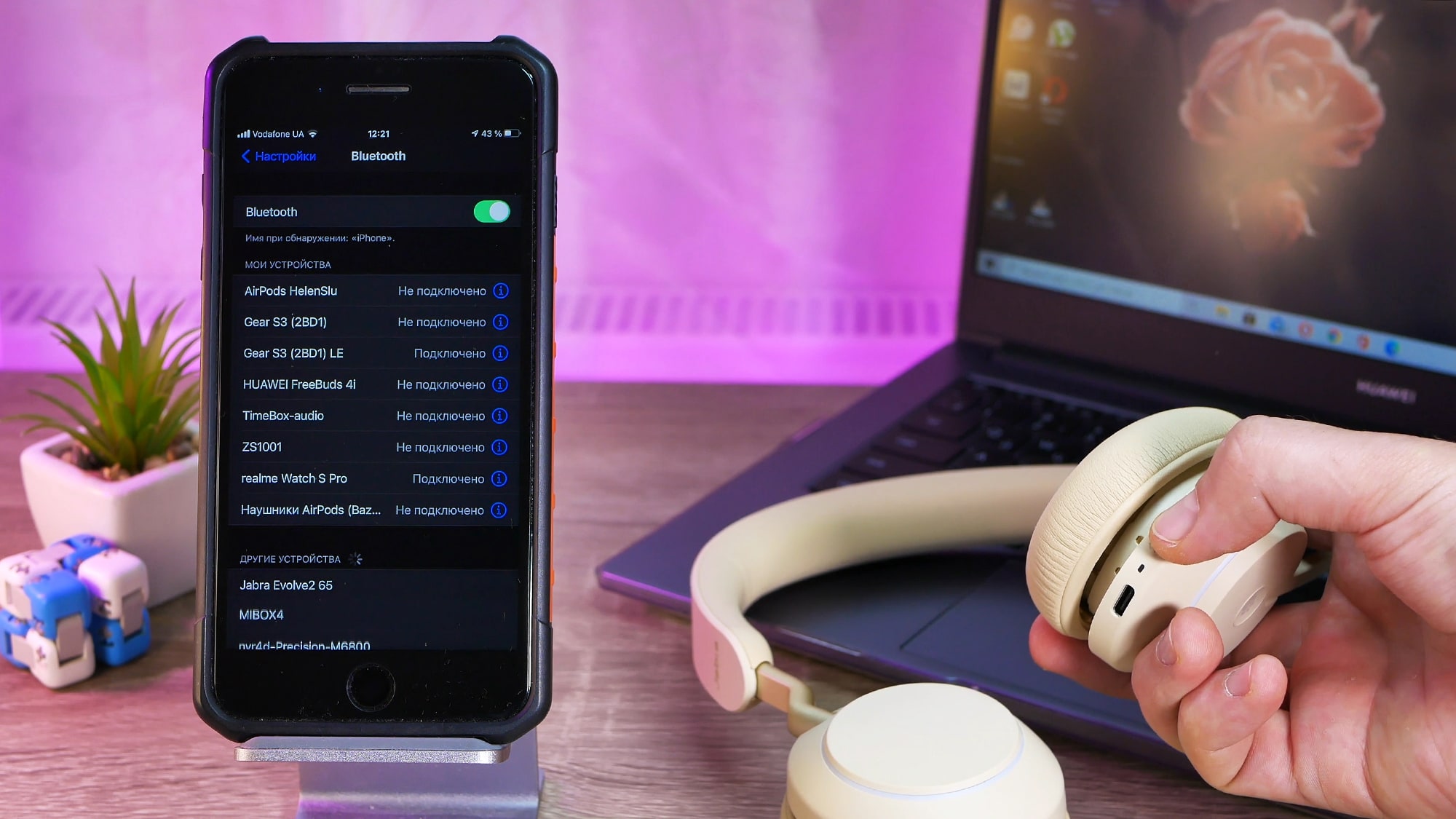 К мобильным устройствам Jabra Evolve2 65 подключается по Bluetooth 5.0. Для этого нужно передвинуть тумблер в режим сопряжения и удерживать его в таком положении несколько секунд, а на сопрягаемом устройстве выбрать подключаемую гарнитуру. Наушники совместимы с Android- и iOS-девайсами.